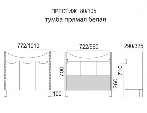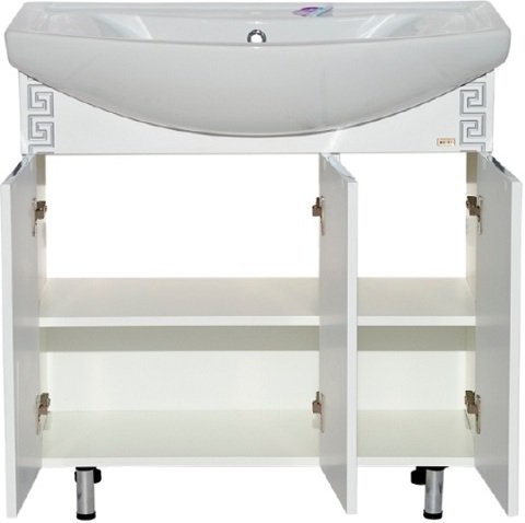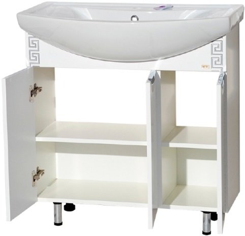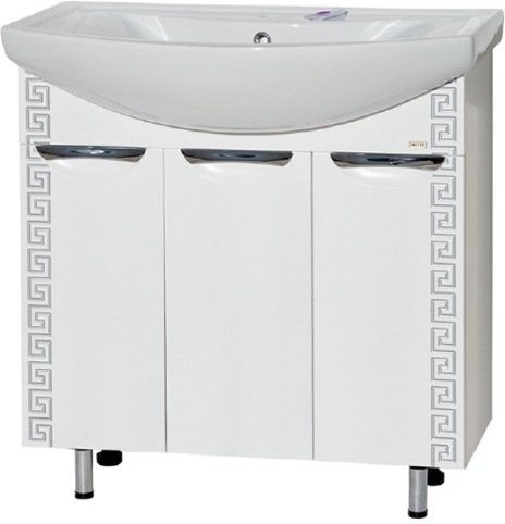 Тумба под раковину прямая Misty Престиж 80 Э-Прсж01080-014ПрСбп белая серебряная патина