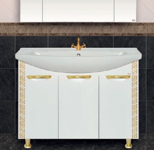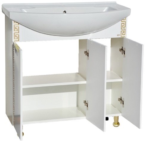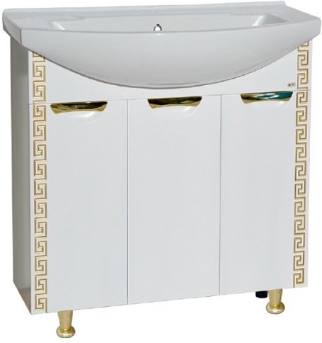 Тумба под раковину прямая белая Misty Престиж 80 Э-Прсж01080-013ПрЗлп золотая патина