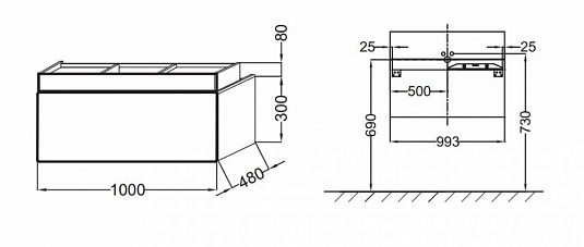 Благодаря ей, коммуникации расположены таким образом, что пространство под раковиной остается свободным. Ящичек для аксессуаров позволяет использовать место хранения в полном объеме. Подсветка обеспечивается за счет светодиодной полосы по периметру раковины.