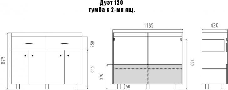 Тумба под раковину Misty Дуэт 120 П-Ду065202я01-1