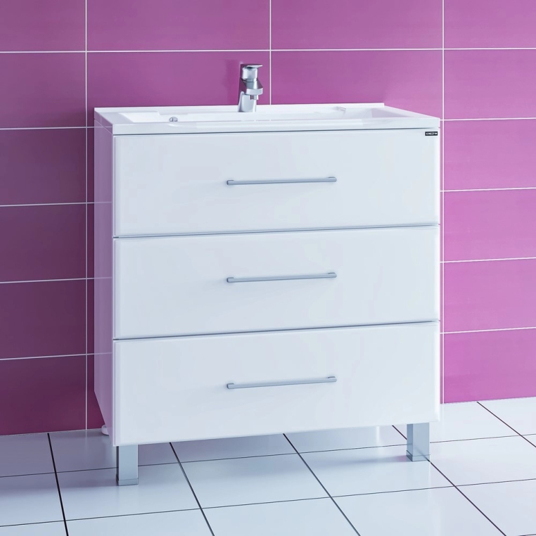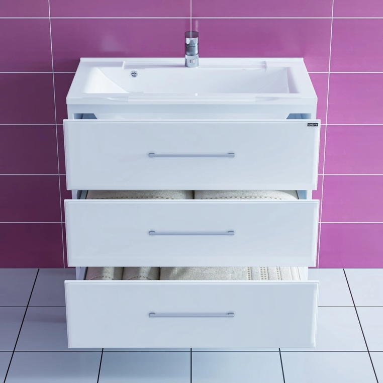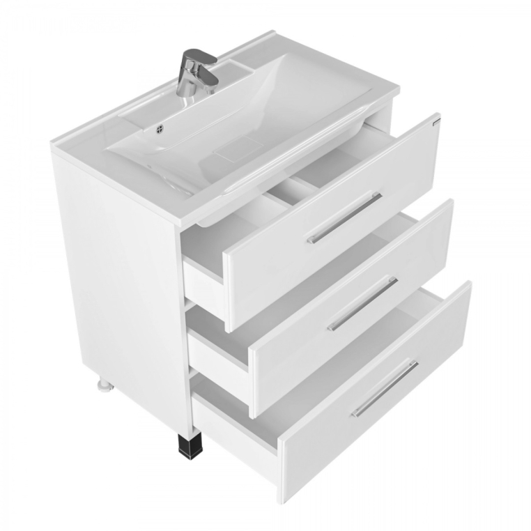 Тумба напольная "Омега 80" 3 ящика для умывальника "Elen 80". Корпус изделия и фасад выполнен из МДФ. Фасад и боковины мебели покрыты глянцевой ПВХ плёнкой.