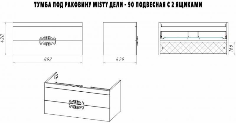 Тумба под раковину Misty Дели 90 П-Дел01090-012П2Я