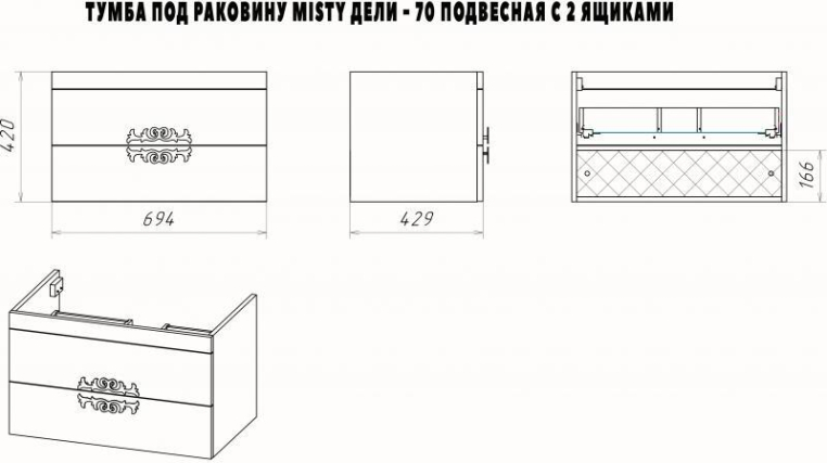 Тумба под раковину Misty Дели 70 П-Дел01070-012П2Я