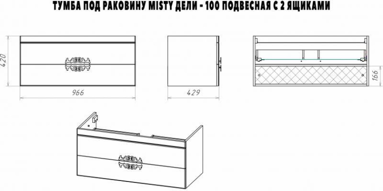 Тумба под раковину Misty Дели 97 П-Дел01100-012П2Я