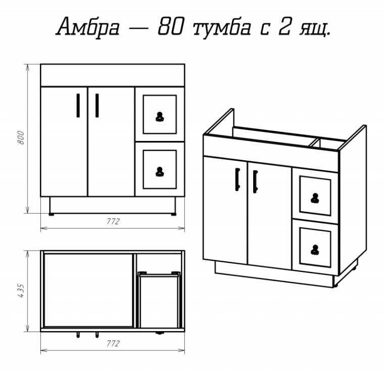 Тумба под раковину Misty Амбра-80 П-Амб0080-011-2Я с двумя ящиками