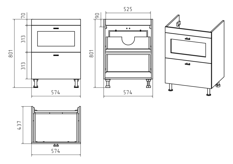 Тумба под раковину Misty Урал-60 Э-Ура-01060-0212Я с двумя ящиками