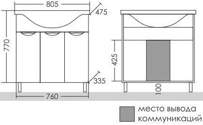 Тумба под раковину СанТа Родос (Классик) 80 напольная 3 дверцы (206023)