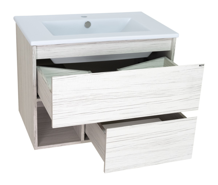 Тумба для комплекта Misty Кама 75 с 2 ящиками. Мебель из коллекции Кама сочетает в себе характерные признаки трех стилей – минимализм, модерн и хай-тек. Комплект мебели представлен тремя элементами – тумба под раковину, зеркальный шкаф и универсальный шкаф-пенал. Коллекцию отличают лаконичный внешний вид и отсутствие внешней фурнитуры.