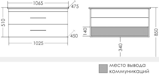 Тумба под раковину СанТа Вегас 105 подвесная 2 ящика (226034)