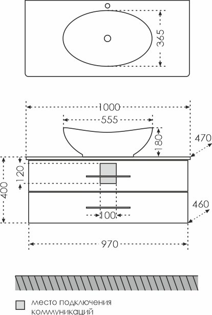 Тумба под раковину СанТа Вегас 100 подвесная со столешницей (226017л)