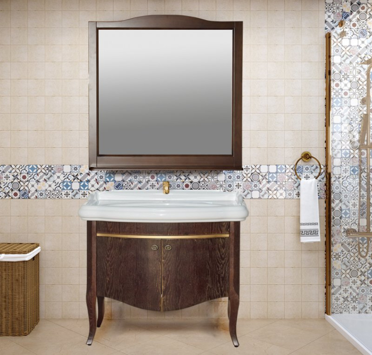 Тумба под раковину Misty Агата 100 напольная орех золотая патина (П-Агт01100-5074)