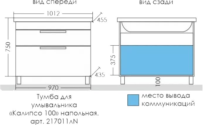 Тумба под раковину СанТа Калипсо NEW 100 напольная 2 ящика (217011лN)