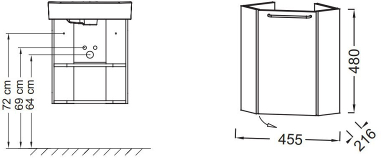 Тумба под раковину Jacob Delafon Odeon Rive Gauche 35 R угловая белый глянец ручка хром (EB2584D-R5-G1C)