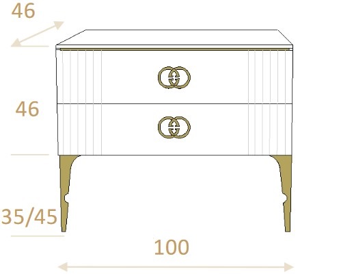 Тумба подвесная, она идет без ножек, но их можно приобрести отдельно (высота ножек 35 см и 45 см). Фурнитура у тумбы в золоте, ножки и ручки покрыты гальваническим способом, ящики с доводчиками. Раковину можно выбрать встраиваемую (моноблок) без столешницы или же со столешницей вместе с накладной раковиной. Столешница может быть выполнена из искуственного камня corian, из керамогранита (biancacarrara, cremanova, neromacqina) и из каленого стекла optiglass.