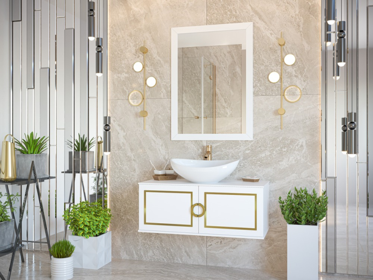 Тумба под раковину Brevita Steffany 105 подвесная латунные вставки