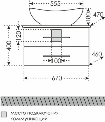 Тумба под раковину СанТа Вегас 70 подвесная со столешницей (226014л)