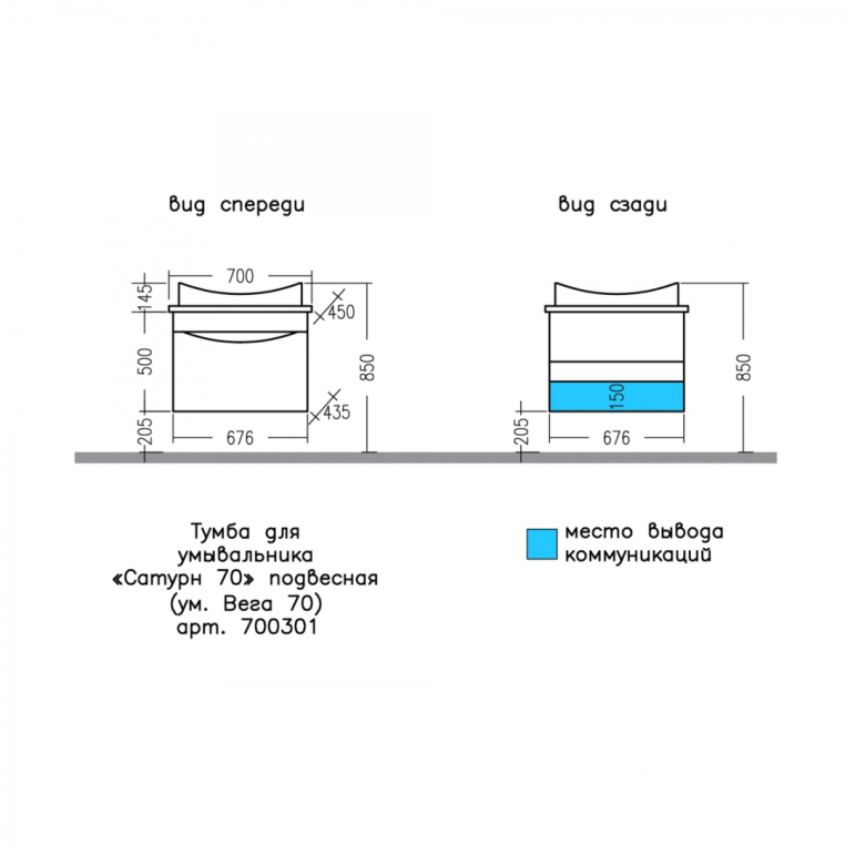 Тумба под раковину СаНта Сатурн 70 700301