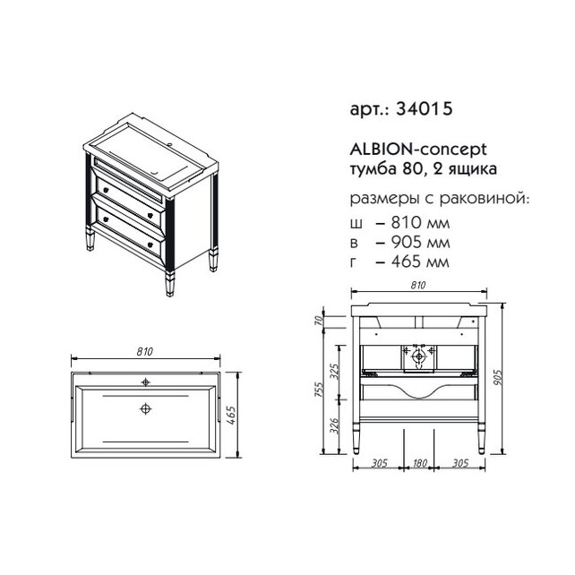 Тумба под раковину Caprigo Albion concept 80 см бланж 34015-TP811