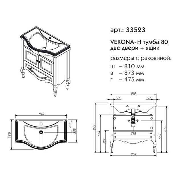 Тумба под раковину Caprigo Verona 80 см оливин 33523-TP813