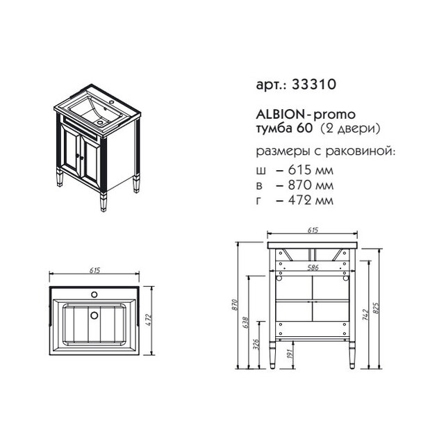 Тумба под раковину Caprigo Albion-promo 60 см bianco antico 33310-В002