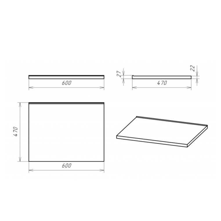 Размер столешницы, мм (ш/г/в): 600x470x30