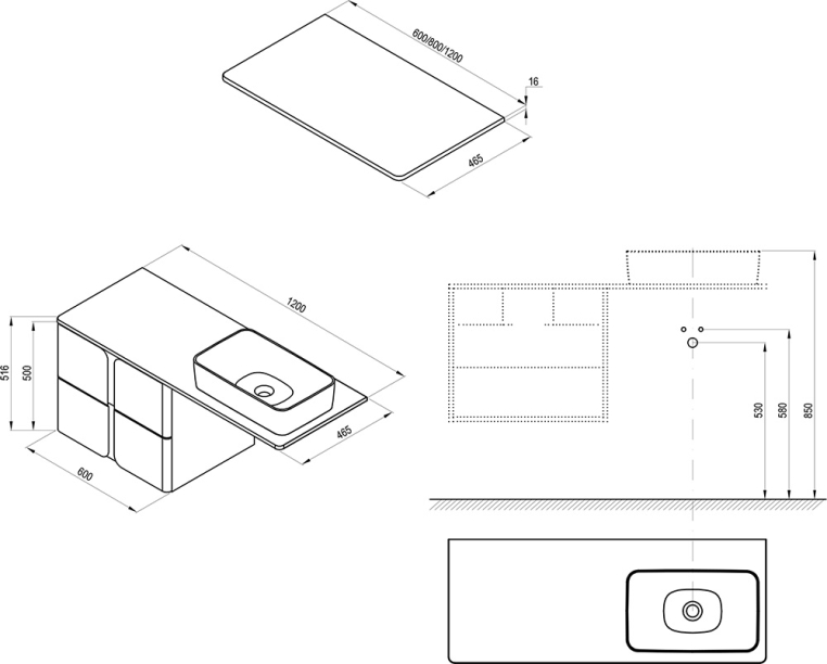 Аксессуары: тумба SD Balance 500, тумба SD Balance 600, умывальник для столешницы (например Uni, Uni Slim), консоль к столешнице Balance/Comfort 1200, полотенцедержатель Balance.