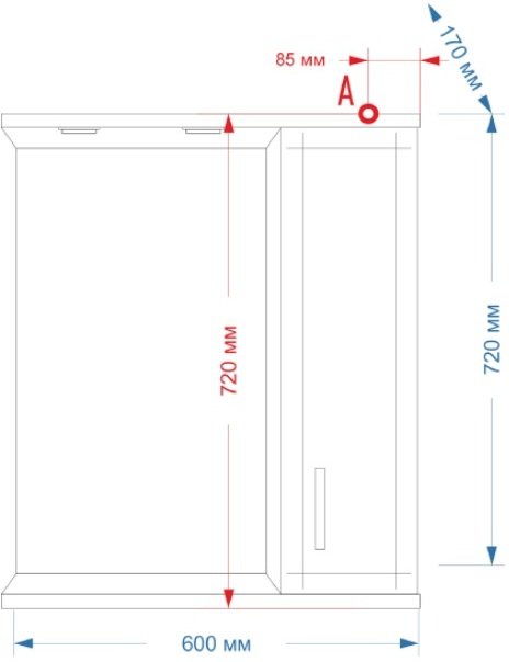 Зеркальный шкаф правосторонний Misty Астра 60 Э-Аст04060-01СвП с подсветкой