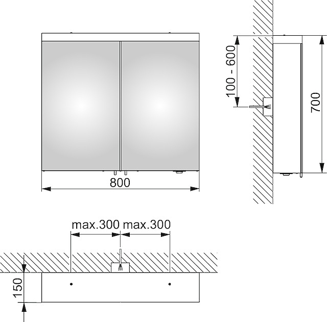 - 2 поворотные дверцы с хрустальным двойным зеркалом