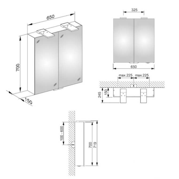 Зеркальный шкаф Keuco Royal 15 14402171301 2 поворотные дверцы с двусторонним озеркаливанием,