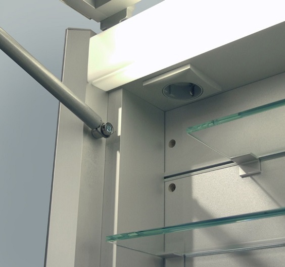 - 5 свободно регулируемых стеклянных полочек (3 шт. - 750 x 90 мм и 2 шт. - 375 x 90 мм)