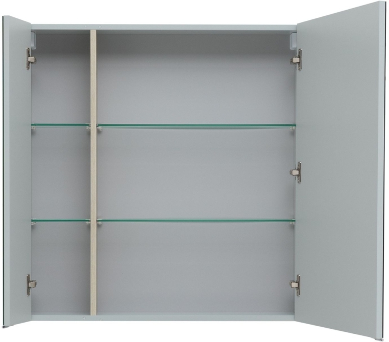 Зеркальный шкаф Aquanet «Алвита» New 80 в сером цвете. Корпус изготовлен из ЛДСП, устойчивой к эксплуатации в условиях высокой влажности. Фасады выполнены из МДФ. Дверцы оснащены доводчиками, обеспечивающими плавность и бесшумность закрывания. Внутреннее пространство используют как дополнительное место хранения для небольших предметов — ватных палочек и спонжей, бритвы и зубных щеток.