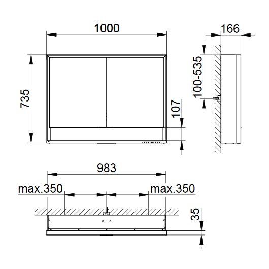 - 2 поворотные дверцы с двусторонним озеркаливанием