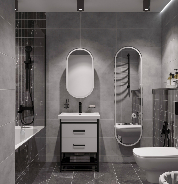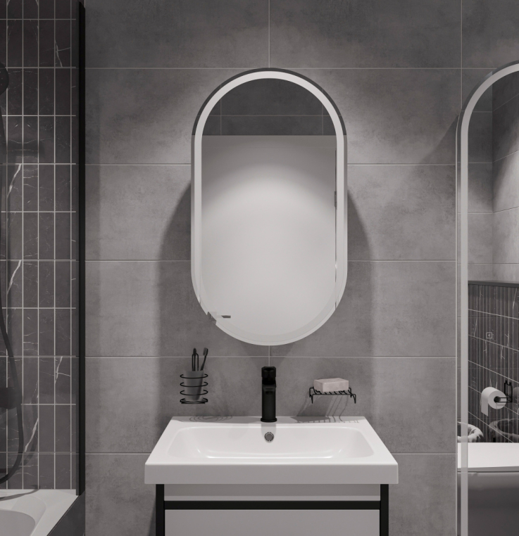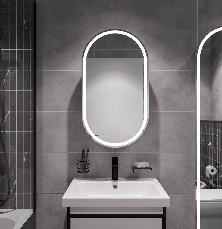 Оснащение зеркала: регулируемая подсветка / подвесы