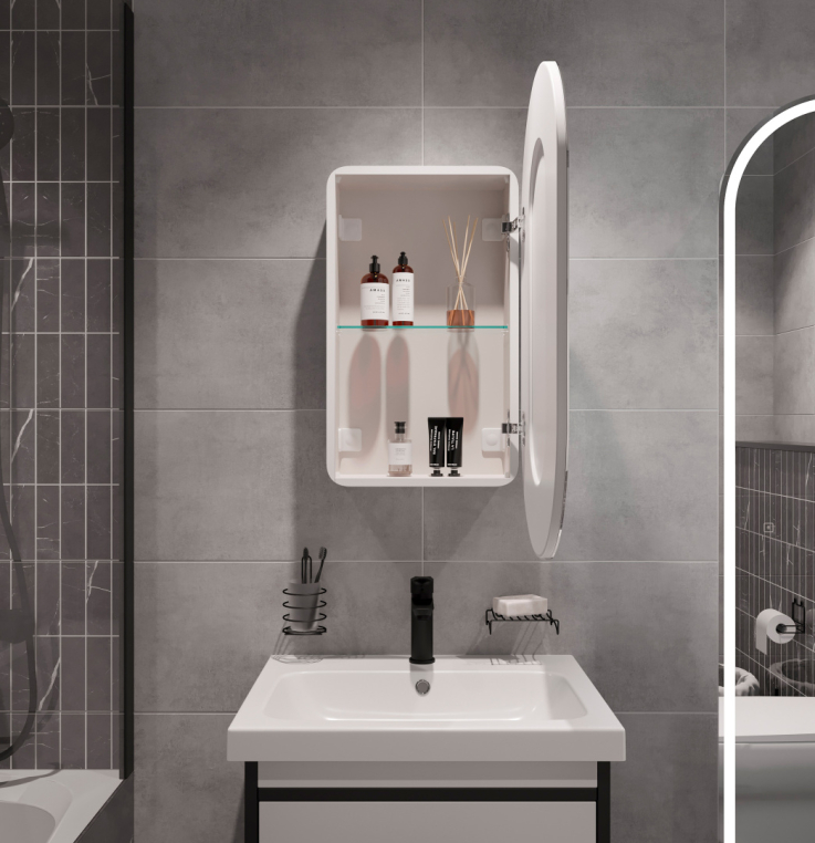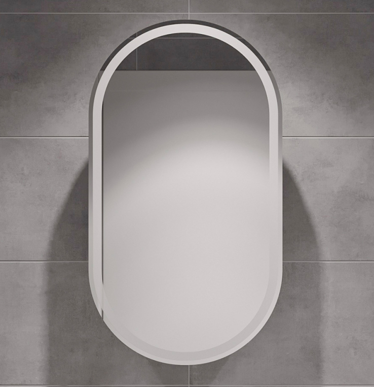 Зеркало-шкаф Stworki Мальмё МВК074 45, с подсветкой, белый, прямоугольный, навесной, овальный, в стиле лофт (МВК074)