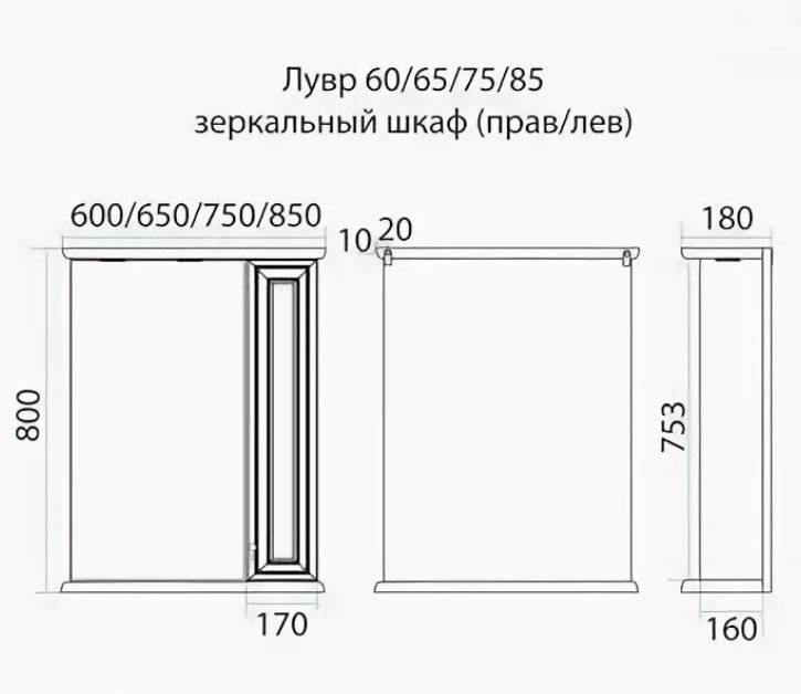 Зеркальный шкаф Misty Лувр 75 П-Лвр03075-1014П правый слоновая кость