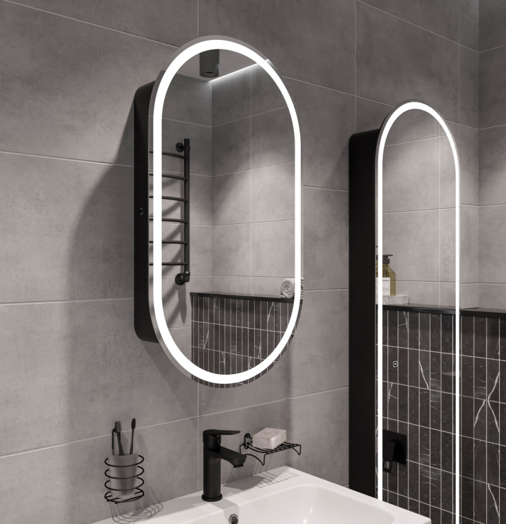 Зеркало-шкаф Stworki Мальмё МВК073 45, с подсветкой, черный, навесной, в стиле лофт, светодиоды (МВК073)