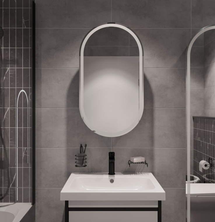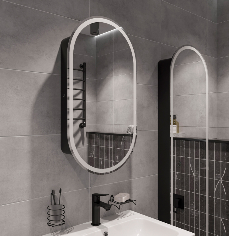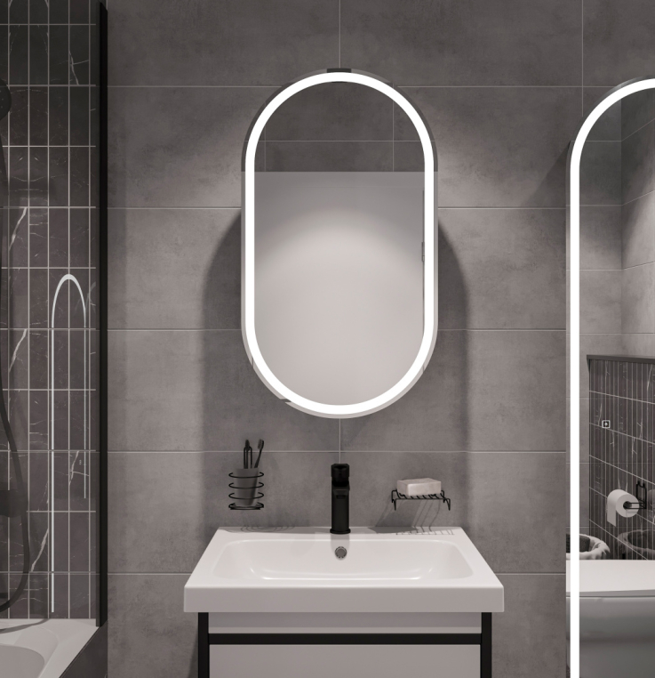 Оснащение зеркала: регулируемая подсветка / подвесы