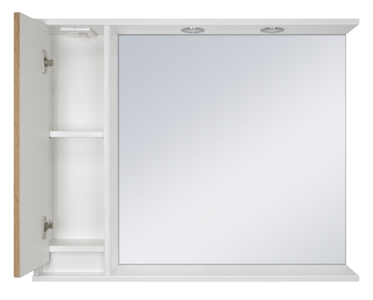 Зеркало для ванной комнаты от Российского бренда Misty, коллекция Адриана - 90 с полочкой, цвет - белый, светлое дерево. Цвет по RAL: ива, форма прямоугольная, размеры (Ш/Г/В) 900х160х720 мм, покрытие - пленка. Зеркало оснащено полочкой, выполнено в современном стиле. Крепится на два подвеса и шуруп с Г-образным крючком.