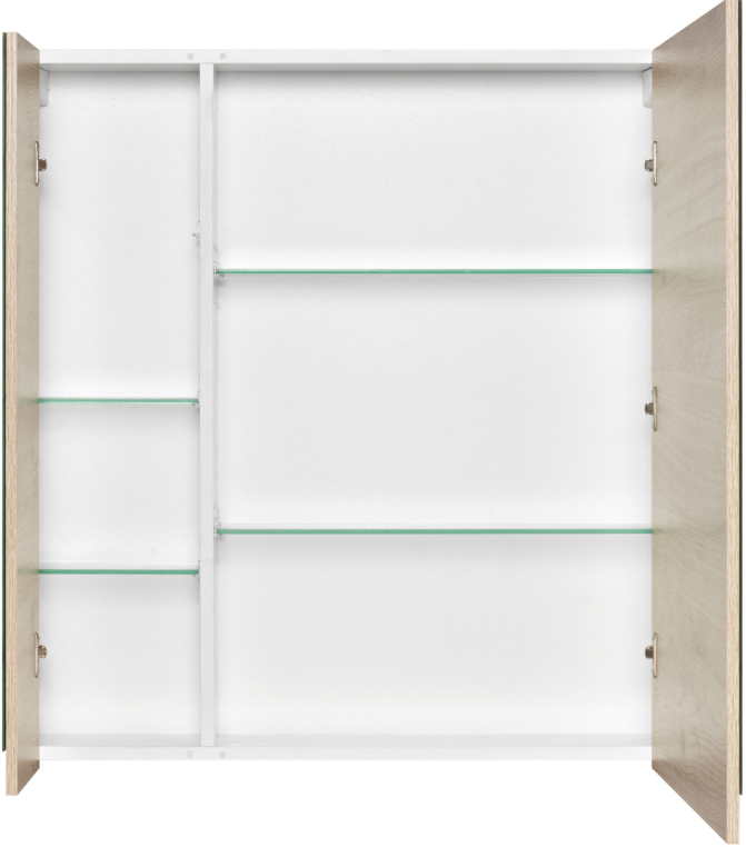 Достаточная ширина зеркала-шкафа Stworki «Стокгольм 80» позволилапроизводителю поделить зеркальный фасад на две створки разнойширины. За каждой из дверец расположено несколько стеклянных полок,защищенных фиксаторами от опрокидывания. Доводчики в петляхобеспечивают бесшумное закрывание фасадов. Зеркало изготовлено наоснове влагостойкой амальгамы, так что сохраняет отражение ясным втечение всего срока эксплуатации, не мутнеет и не покрываетсяржавчиной. Столь же прочен корпус из ДСП, защищенный от внешнихвоздействий краской, нанесенной по технологии УФ-отверждения.