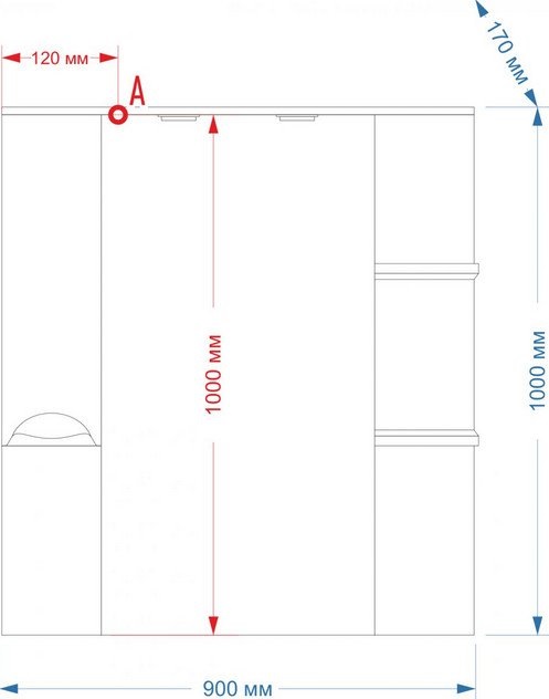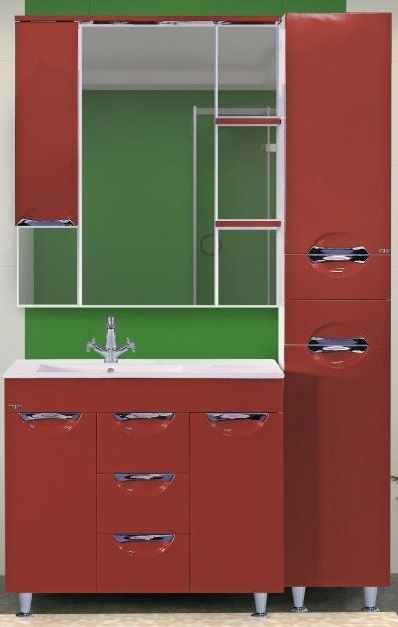 П-Кри02090-101СвЛ Шкаф-зеркало 90 см, бордовый, левый, Misty Кристи 90 L