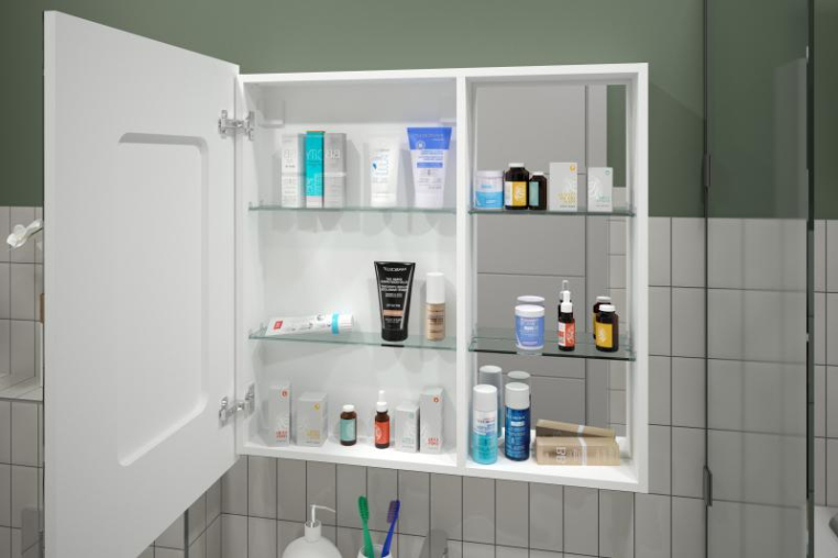 Оснащение зеркала: доводчик, зеркало с подсветкой, зеркало с розеткой, сенсорный выключатель, розетка и выключатель снаружи