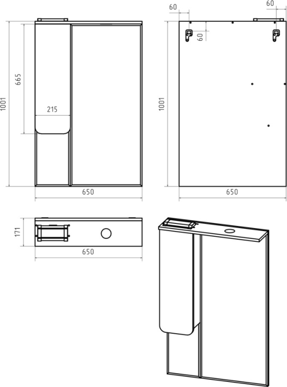 Зеркальный шкаф Misty Чегет 65 левый
