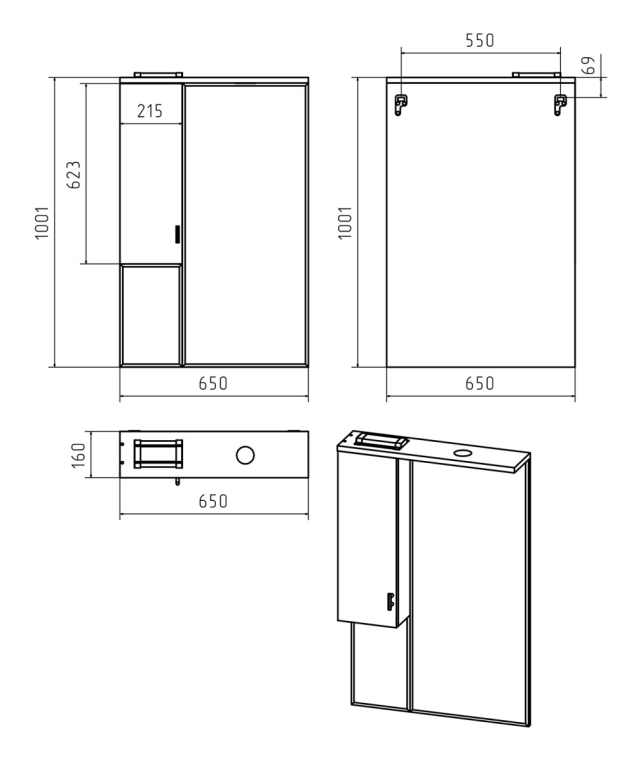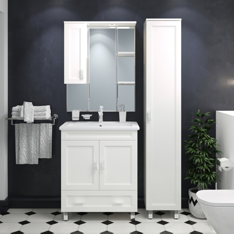 Оснащение зеркала: зеркало с подсветкой, зеркало с розеткой, розетка и выключатель внутри шкафчика