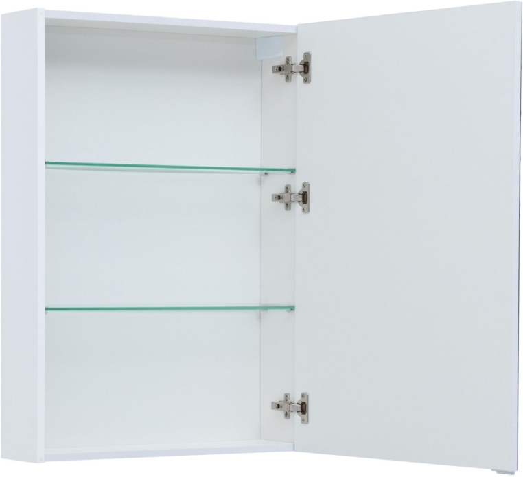 Зеркальный шкаф Aquanet «Алвита» New 60 в белом матовом цвете. Корпус изготовлен из ЛДСП, устойчивой к эксплуатации в условиях высокой влажности. Фасады выполнены из МДФ. Дверца оснащена доводчиком, обеспечивающим плавность и бесшумность закрывания. Внутреннее пространство используют как дополнительное место хранения для небольших предметов — ватных палочек и спонжей, бритвы и зубных щеток.