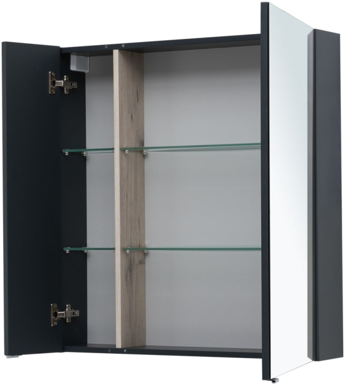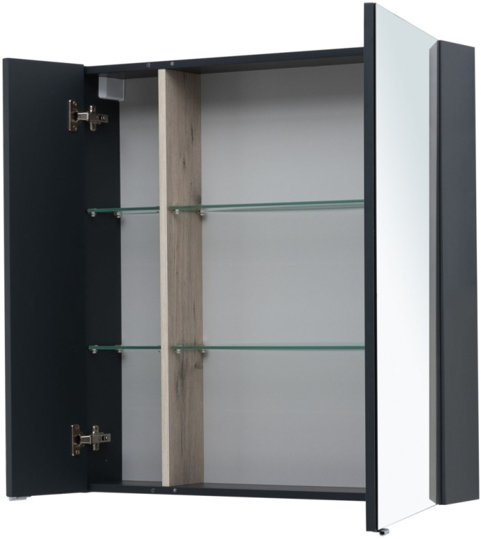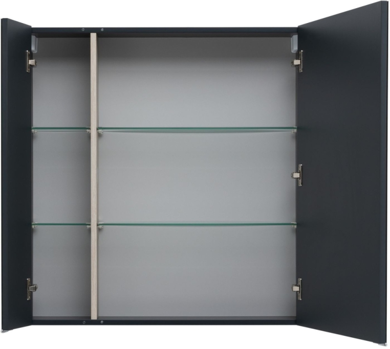 Зеркальный шкаф Aquanet «Алвита» New 80 в цвете «антрацит». Корпус изготовлен из ЛДСП, устойчивой к эксплуатации в условиях высокой влажности. Фасады выполнены из МДФ. Дверцы оснащены доводчиками, обеспечивающими плавность и бесшумность закрывания. Внутреннее пространство используют как дополнительное место хранения для небольших предметов — ватных палочек и спонжей, бритвы и зубных щеток.