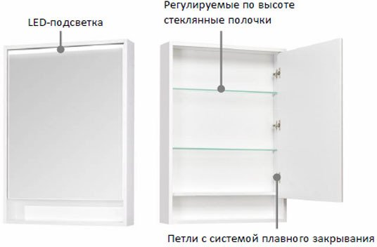 Зеркальный шкаф Aquaton Капри 60 1A230302KP010 белый глянец