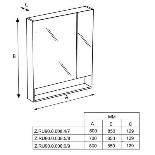 Зеркальный шкаф со светильником Roca The GAP!
