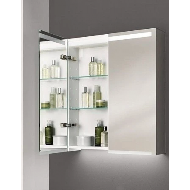 Зеркальный шкаф Geberit Option 500.205.00.1 лаконичных форм элегантно впишется в интерьер Вашего дома. Благодаря подвесной конструкции изделие не занимает много места, что экономит пространство в ванной комнате и облегчает уборку. Модель оснащена двумя стеклянными съемными полками. Корпус изготовлен из влагостойкой трехслойной ДСП с зеркальным покрытием снаружи, у дверей зеркальное покрытие внутри и снаружи.