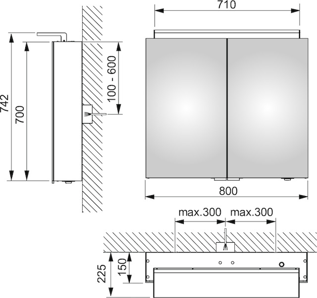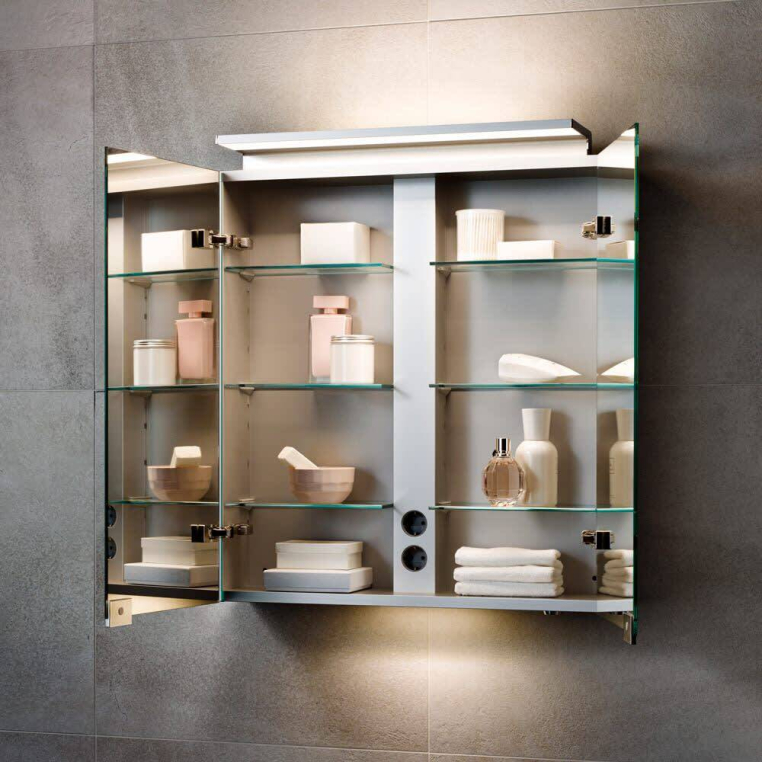 Зеркальный шкаф Keuco Royal L1 80x74 13603171302 2 поворотные дверцы с хрустальным двойным зеркалом, боковины корпуса зеркальные, 2 ящика для мелочей.