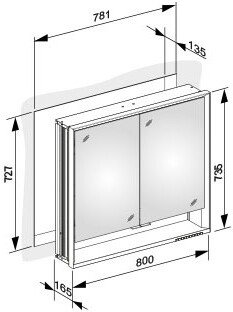 - 2 поворотные дверцы с двусторонним озеркаливанием стекла, корпус из анодированного серебристого алюминия,